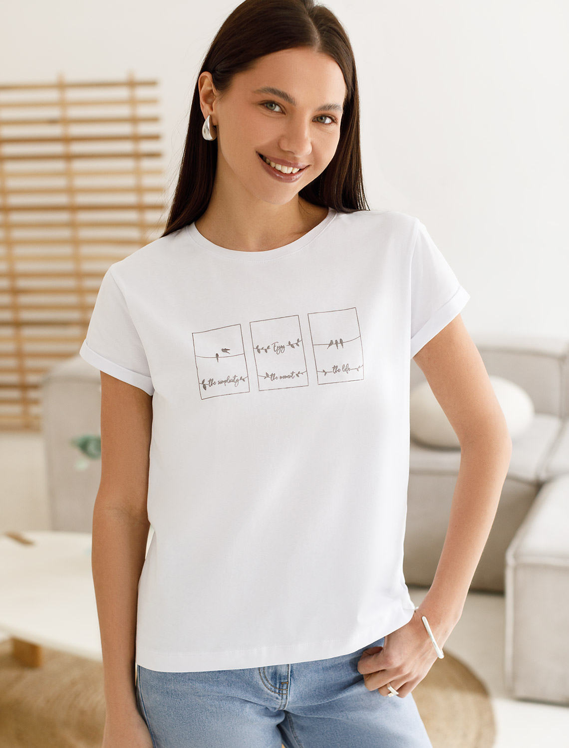 Перевод принта: Enjoy the simplicity, the moment, the life - наслаждайся простотой, моментом, жизнью. 92%Хлопок 8%ПУ