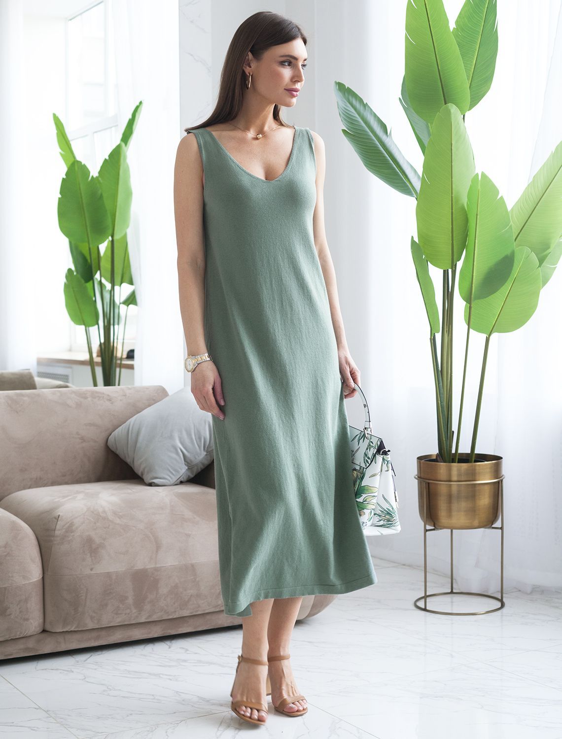 Вязаное платье-сарафан из хлопка с вискозой. Слегка эластичная ткань хорошо держит форму и подчеркивает силуэт. Актуальная длина подходит для любого типа фигуры. Создавайте чувственный образ на вечеринку или носите каждый день с лаконичным кардиганом D31.368 60%Хлопок 40%Вис