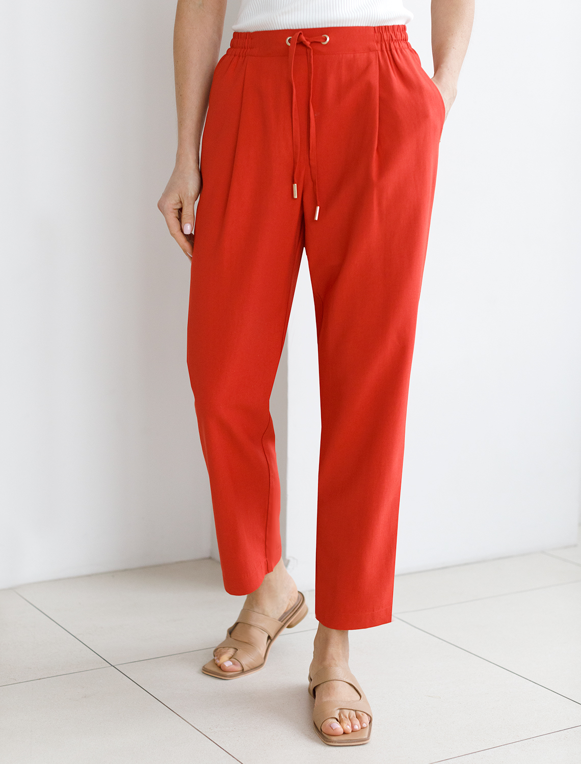Брюки выполнены из плотного лиоцелла. Модель дополнена карманами и поясом с эластичной резинкой и регулируемым шнурком с золотистой фурнитурой. Ткань изделия отлично держит форму, плавно драпируется и не просвечивает. В теплое время года приятно охлаждает кожу. Добавление синтетических волокон в составе изделия, предотвращает сминаемостьи поддерживает формоустойчивость. Брюки сочетаются в костюме с топом D23.063 и блузкой D29.266, D29.267 и жилетом D27.002 70%Лиоцелл (Вис) 30%ПЭ