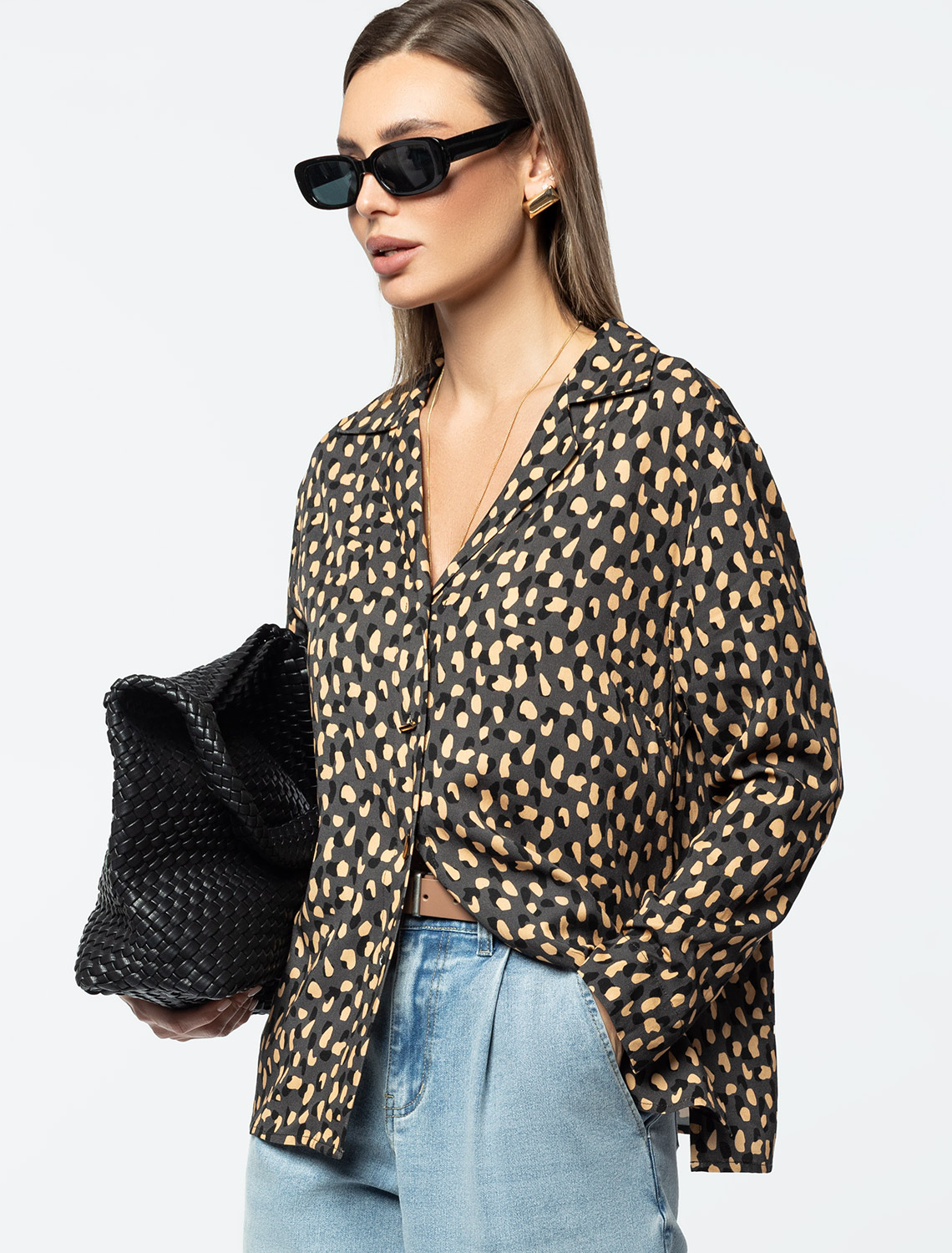 Блузка свободного кроя со спущенной линией плеча выполнена из премиальной вискозы. Модель с трендовым воротом как у пижамы дополняют изящные пуговицы в виде запонок. Материал - очень приятен к телу именно в осеннее время за счет его особенного плетения создает уютный обволакивающий эффект и в тоже время не теряет своей легкости. 100%Вис