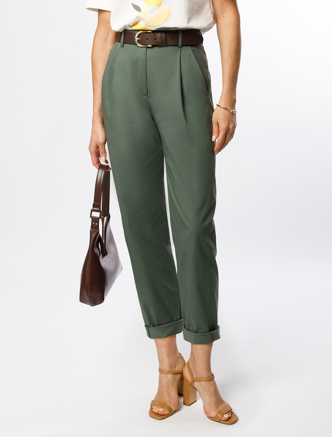 Брюки-бананы в стиле casual выполненны из хлопкового твила. Натуральный материал ткани обеспечивает высокий уровень комфорта, отличную гигроскопичность и воздухопроницаемость. Эластан в составе изделия минимизирует деформацию модели и продлевает срок носки. Брюки дополнены защипами и боковыми карманами. Зауженный силуэт подчеркивает достоинства и скрывает недостатки фигуры. 97%Хлопок 3%ПУ
