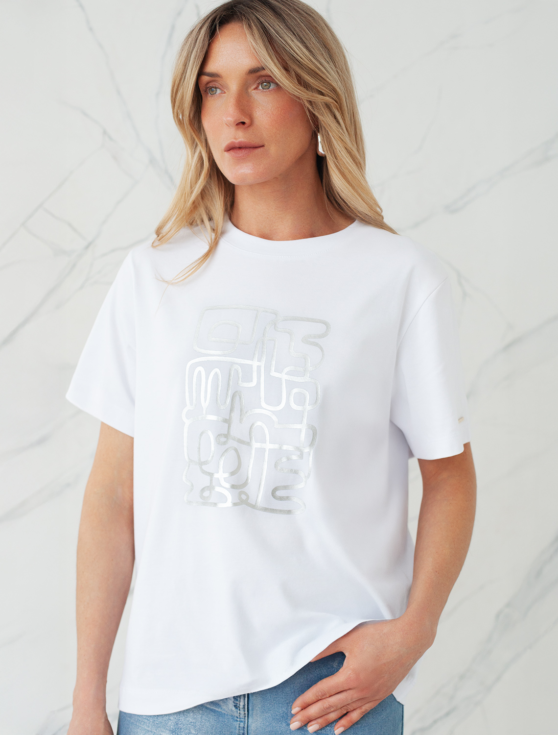 Футболка выполнена из премиального хлопка. Авторский принт нанесен фактурными красками с устойчивым покрытием. Наличие эластана в составе гарантирует комфорт и формоустойчивость. Изделие дополнено фирменным металлическим логотипом бренда. 92%Хлопок 8%ПУ