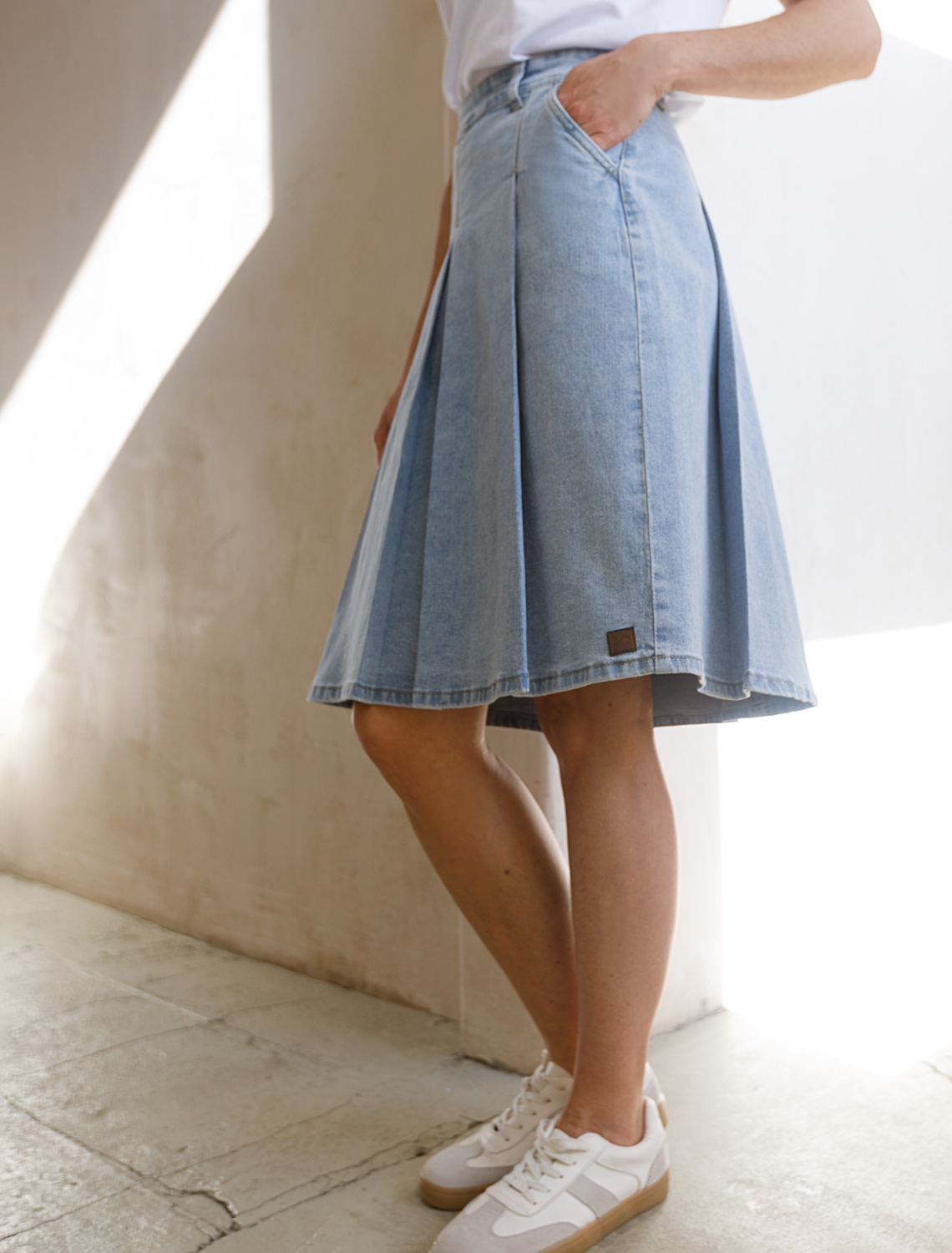 Юбка выполнена из эластичного денима. Расклешенная трендовая модель со средней посадкой и декоративной стиркой. Наличие эластана в составе изделия гарантирует комфорт и долговечность. Подходит для любой фигуры. Украшена фирменным патчем бренда. 85%Хлопок 12%ПЭ 3%ПУ