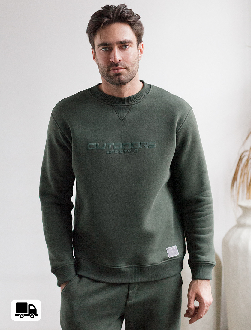Свитшот с круглым воротом выполнен из премиального эластичного футера трехнитки с теплым начесом. Модель дополнена фактурным лаконичным принтом с матовым покрытием и нашивкой с логотипом бренда. Свободный силуэт не сковывает движений. Сочетается в костюме с брюками U44.006 80%Хлопок 20%ПЭ