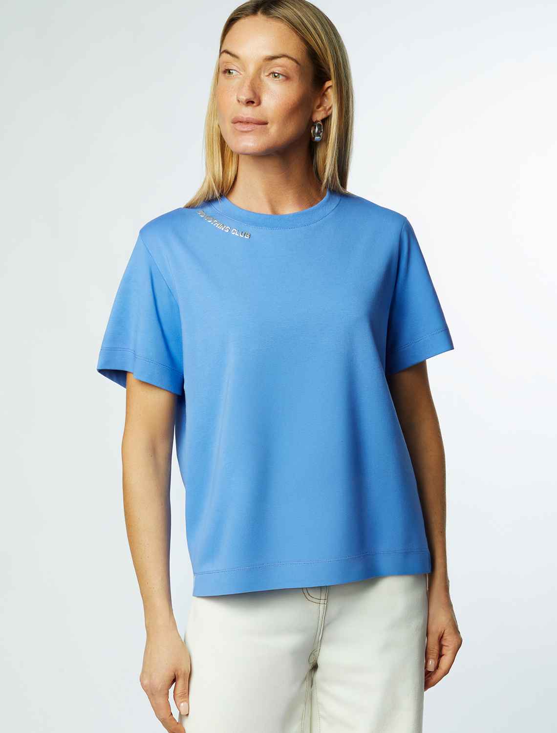 Перевод принта: Do nothing club - клуб любителей отдыха. Футболка выполнена из премиального хлопка с эластаном. Фактурный принт нанесен фольгой с устойчивым покрытием. Модель среднего объема легко впишется в повседневные аутфиты и добавит акцента в образы. Эластичный материал гарантирует комфорт и формоустойчивость. Изделие дополнено металлическим логотипом бренда. 92%Хлопок 8%ПУ