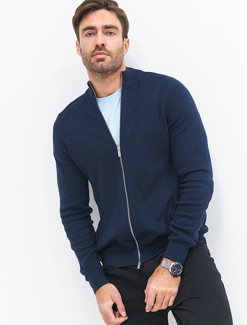 Кардиган плотной вязки из хлопковой пряжи с добавлением акрила. Модель дополнена боковыми карманами и застежкой на металлическую молнию. Изделие гармонично дополнит как повседневный образ, так и нестрогий офисный комплект, с рубашками, футболками или водолазкой. Внизу пришит металлический логотип бренда. 60%Хлопок 40%ПАН (акрил)