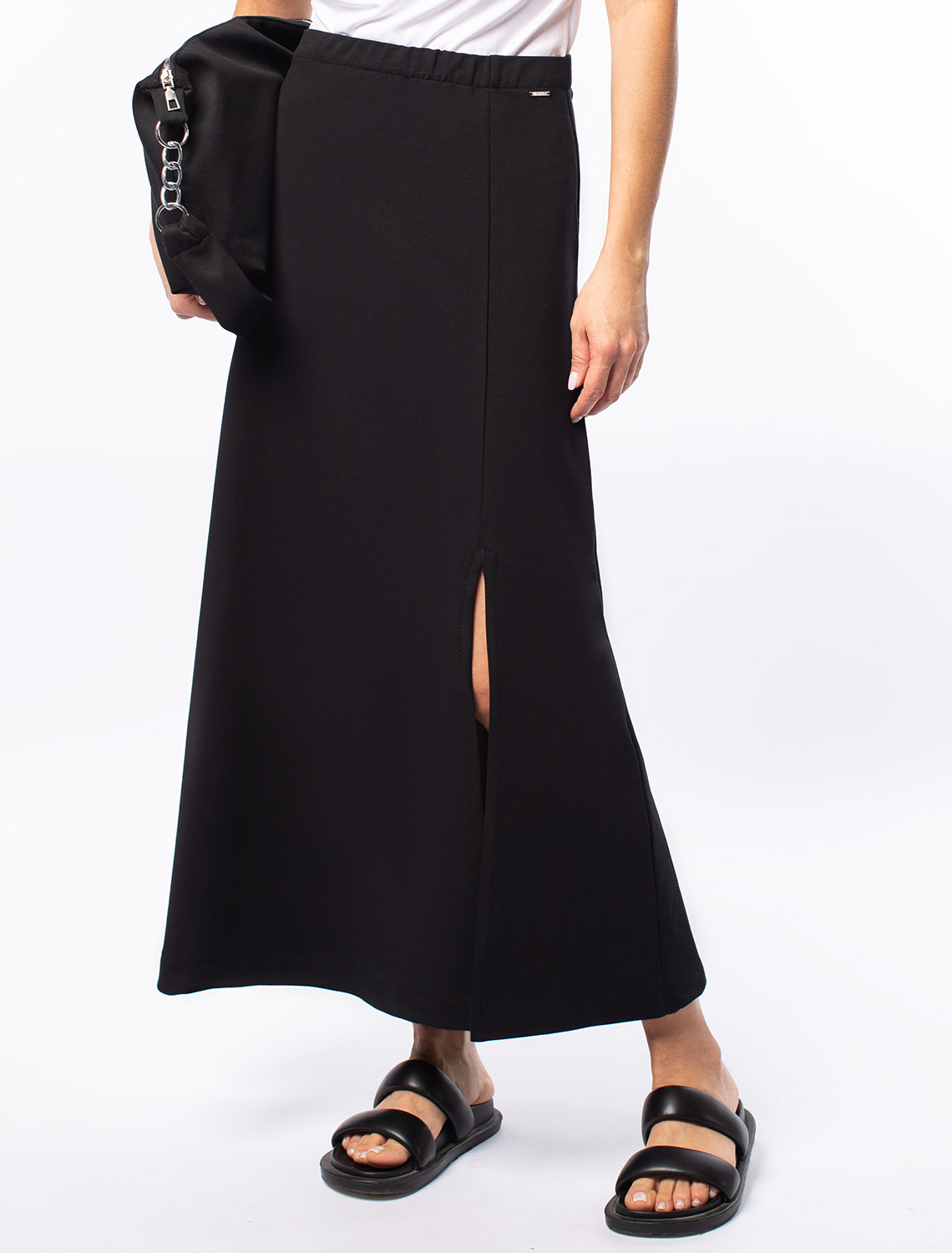 Юбка силуэта полусолнце выполнена из эластичного футера двухнитки. Модель дополнена высоким разрезом спереди и поясом на резинке. Эластан в составе изделия гарантирует комфорт и формоустойчивость. Сочетайте в комплекте с свитшотом D49.072 и паркой D49.076 95%Хлопок 5%ПУ