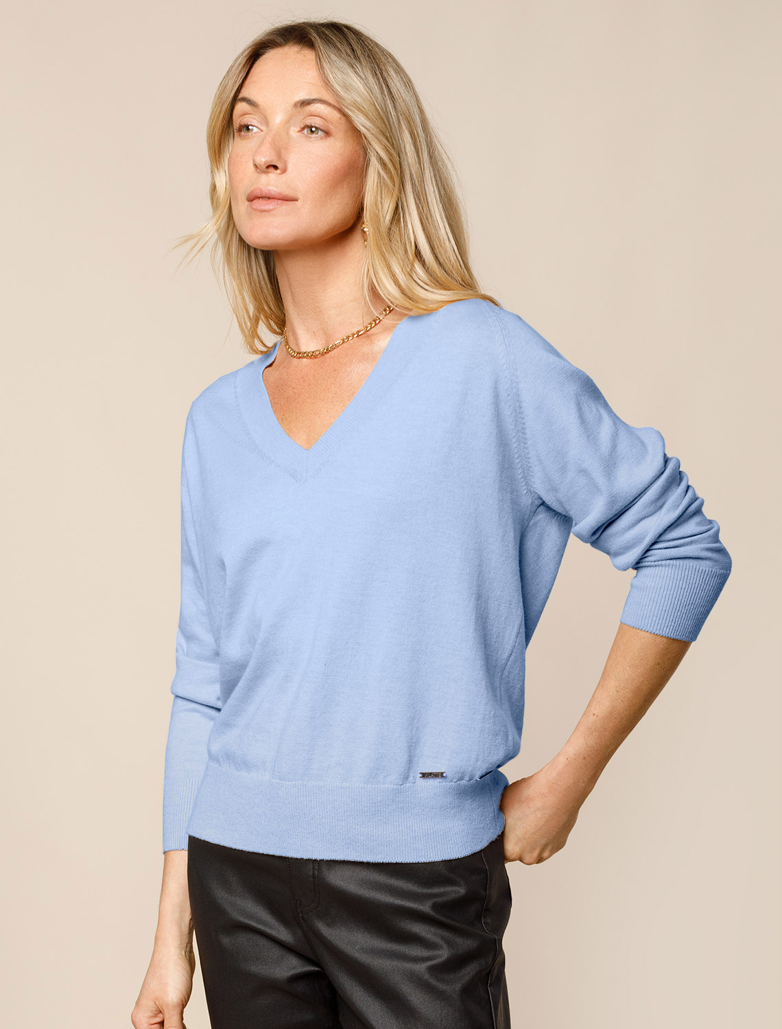 Джемпер тонкой вязки выполнен из хлопка с добавлением кашемира. Модель с V-вырезом свободного силуэта. Мягкая и очень приятная пряжа в рубчик совершенно не колется, сохраняет тепло при этом не перегревая, гарантируя безупречный комфорт. 70%Хлопок 21%ПА 9%Кашемир