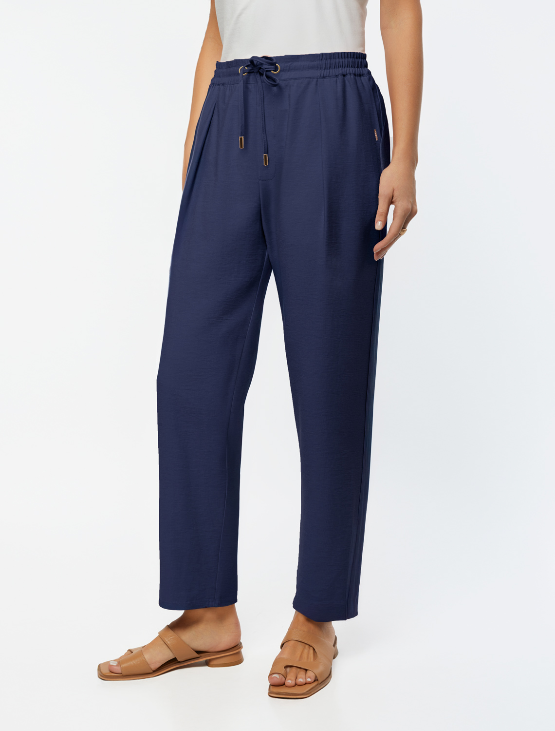 Брюки выполнены из плотного лиоцелла. Модель дополнена карманами и поясом с эластичной резинкой и регулируемым шнурком с золотистой фурнитурой. Ткань изделия отлично держит форму, плавно драпируется и не просвечивает. В теплое время года приятно охлаждает кожу. Добавление синтетических волокон в составе изделия, предотвращает сминаемостьи поддерживает формоустойчивость. Брюки сочетаются в костюме с топом D23.063 и блузкой D29.266, D29.267 и жилетом D27.002 70%Лиоцелл (Вис) 30%ПЭ