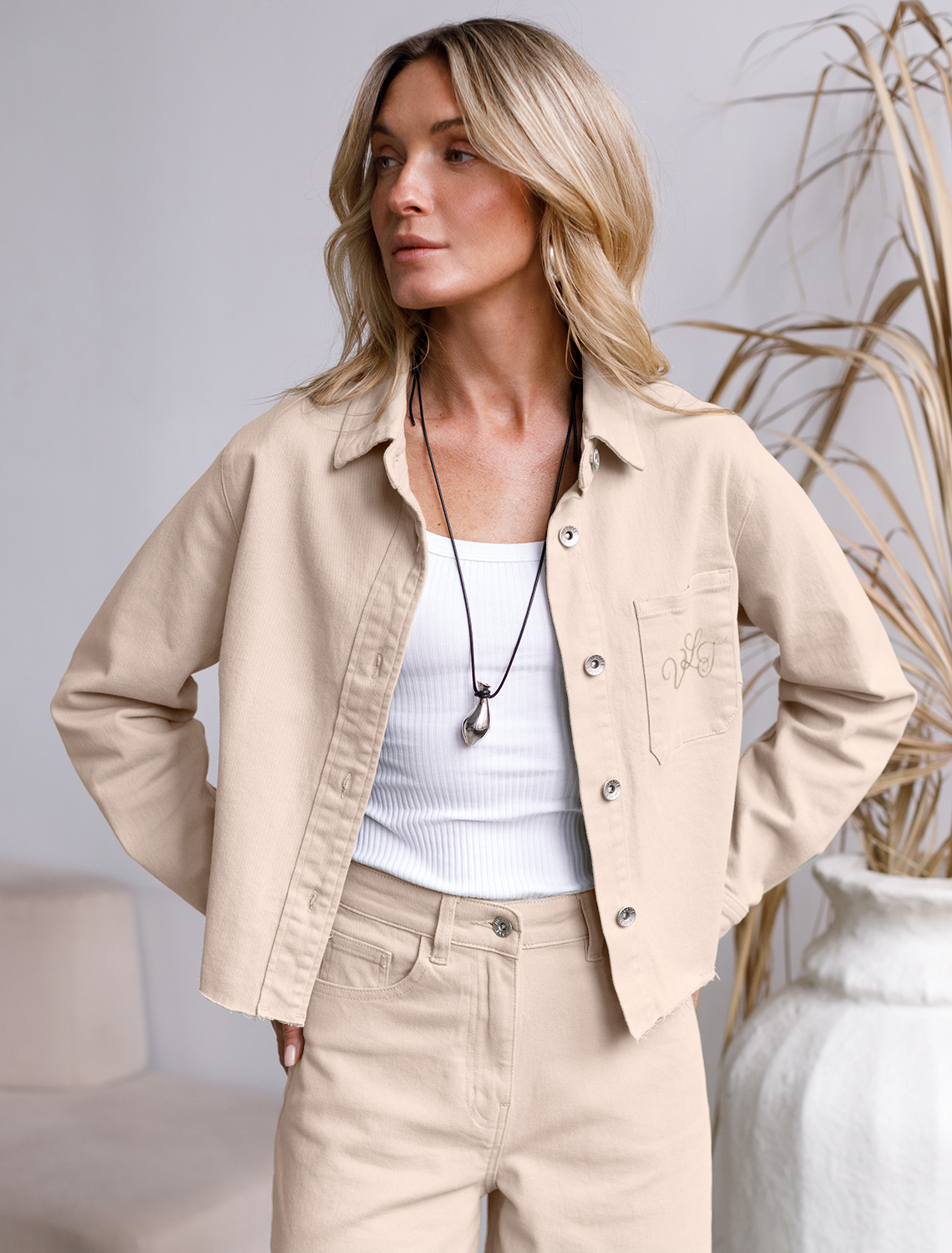 Куртка выполнена из денима с эластаном. Модель с трендовым открытым срезом дополнена одним накладным карманом с вышитым логотипом и брендированными металлическими пуговицами. Изделие сочетается в комплекте с юбкой D56.114 и брюками D54.130, D54.137 98%Хлопок 2%ПУ